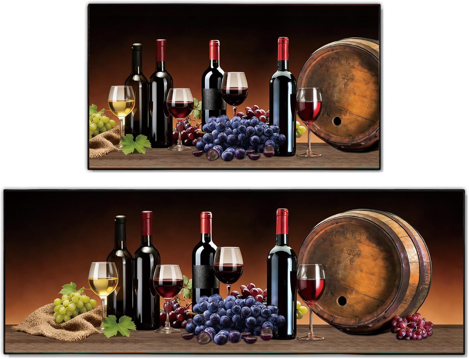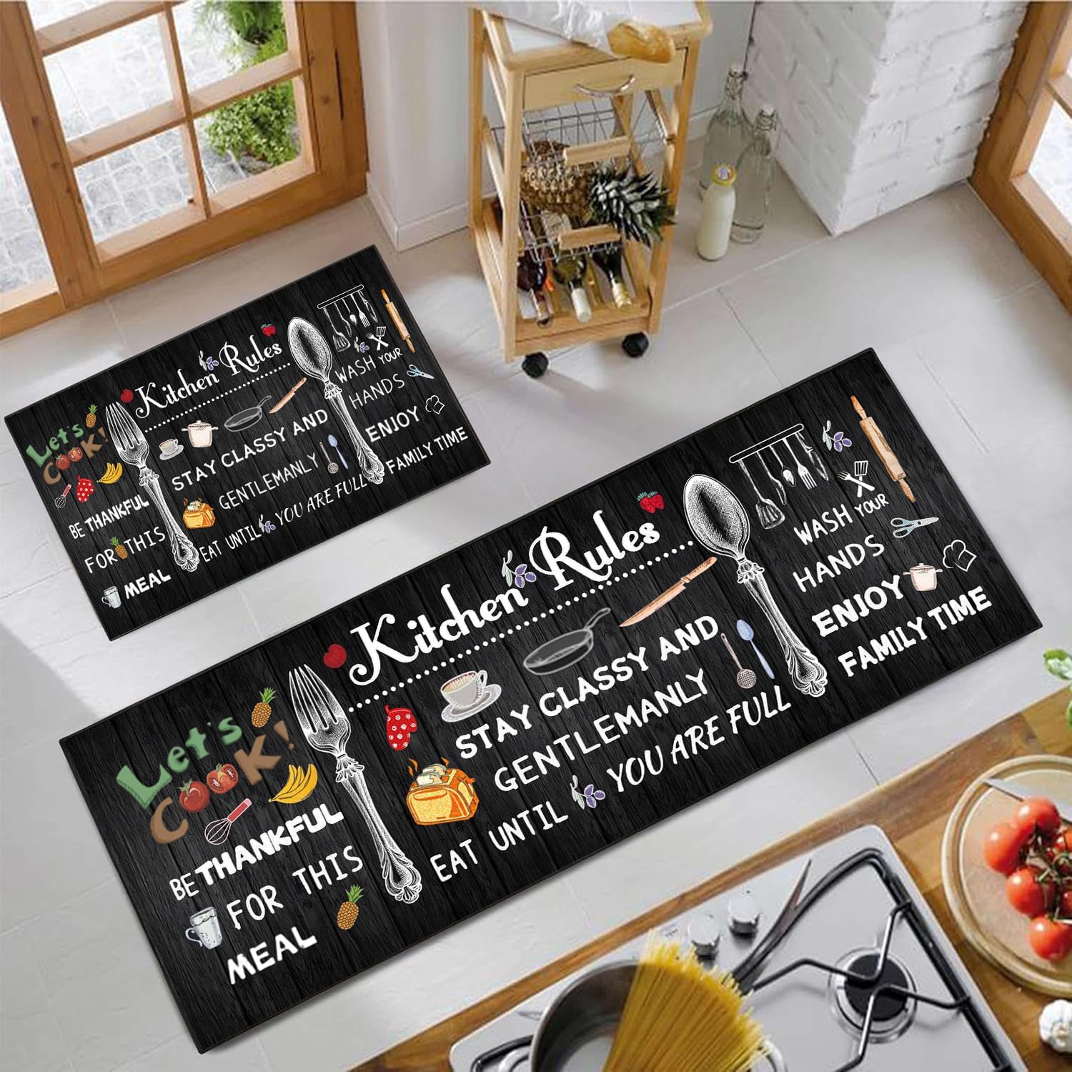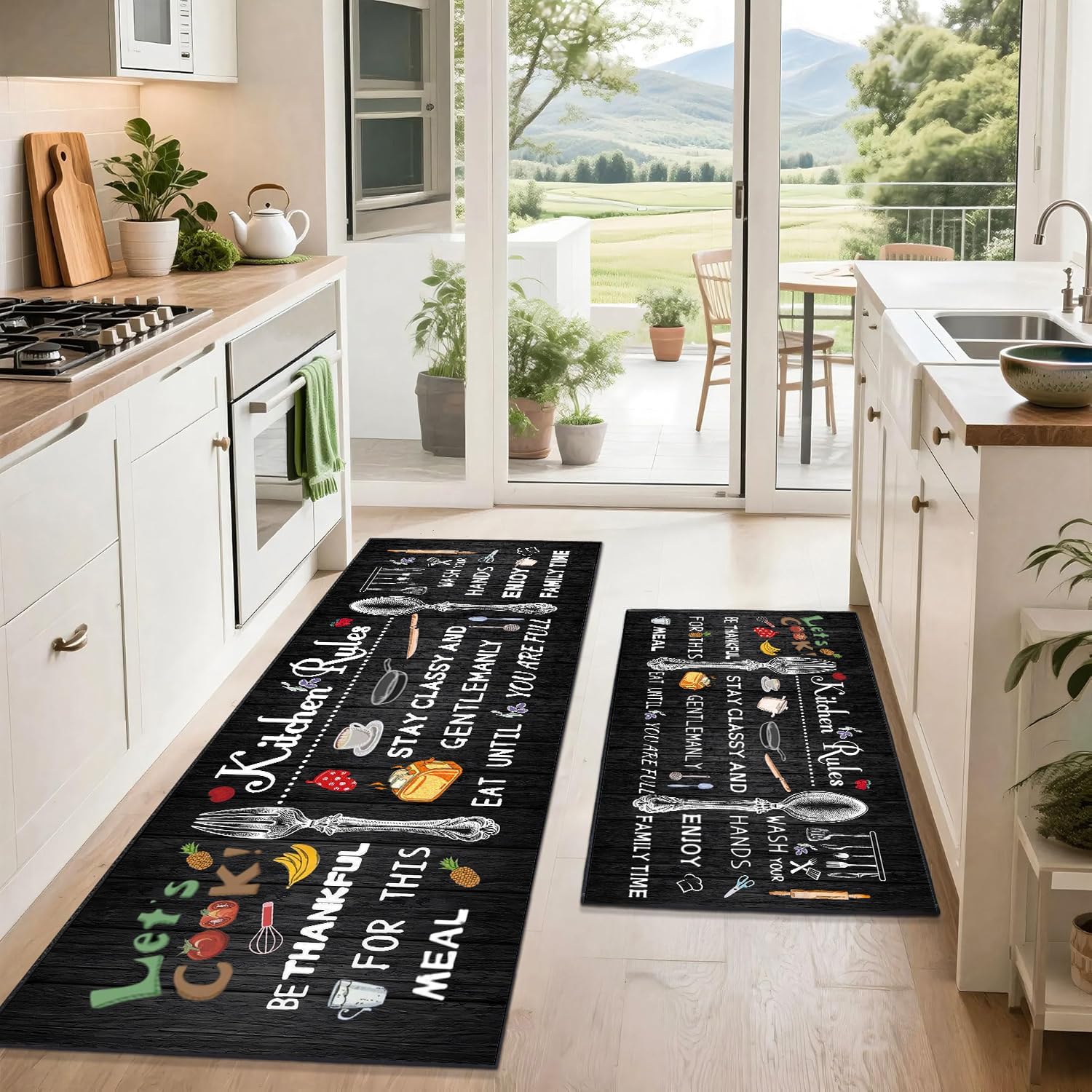Farmhouse Kitchen Rug 2 Piece Set, Black and White Rustic Vintage Style Theme Decor Kitchen Rugs, Absorbent Washable Non-Slip Floor Mats, Home Indoor Runner Carpet 17x30+17x47 Inches