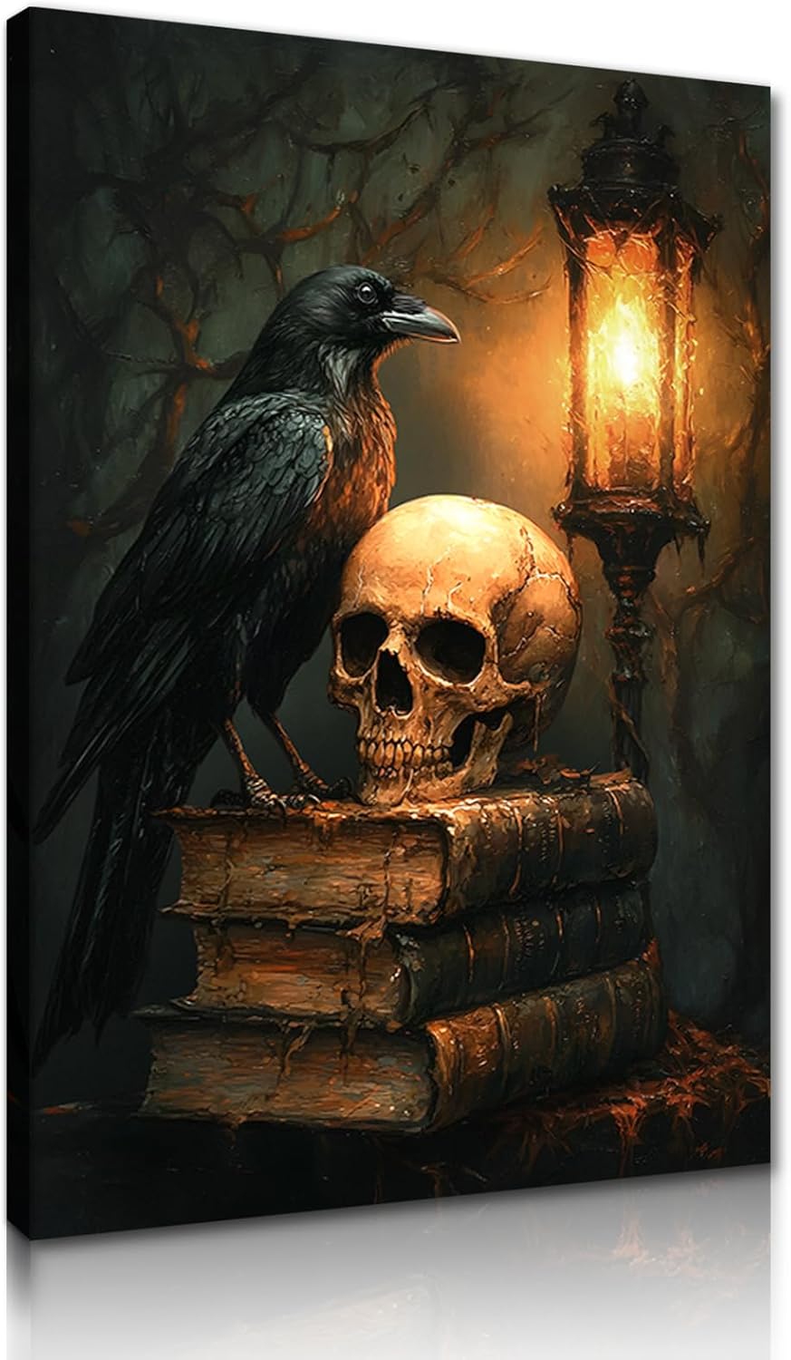 Introduction: Our canvas wall art decoration is printed with fade-resistant ink to ensure clear and vivid prints, but due to differences in personal monitors, the colors of each user may vary slightly, which is subject to the actual item received. Features: This wall art canvas painting is perfectly stretched on a wooden frame, and hooks are installed on each panel for easy hanging. Our product is a modern way of decoration, combining vivid and warm colors, which is perfect for you to create a unique home environment and show your personal taste. Applicable scenarios: This Halloween horror crow with skull wall decoration is not only suitable for home wall decoration, but also can be used as a personalized arrangement of street, party,garden and a great choice for artistic embellishment in commercial places such as hotel and bar Unique present: This wall decoration can be given as a present for family and friend on Halloween. Size Important Tips: Please note that the display pictures are for illustration purposes only and do not represent the actual size of the wall decoration painting. Please measure your wall correctly and make sure to choose the correct size. Our Service: If you encounter any problems with your order, you can contact us and we will serve you as soon as possible. Let our products bring you artistic enjoyment, please "Add to Cart Now"!