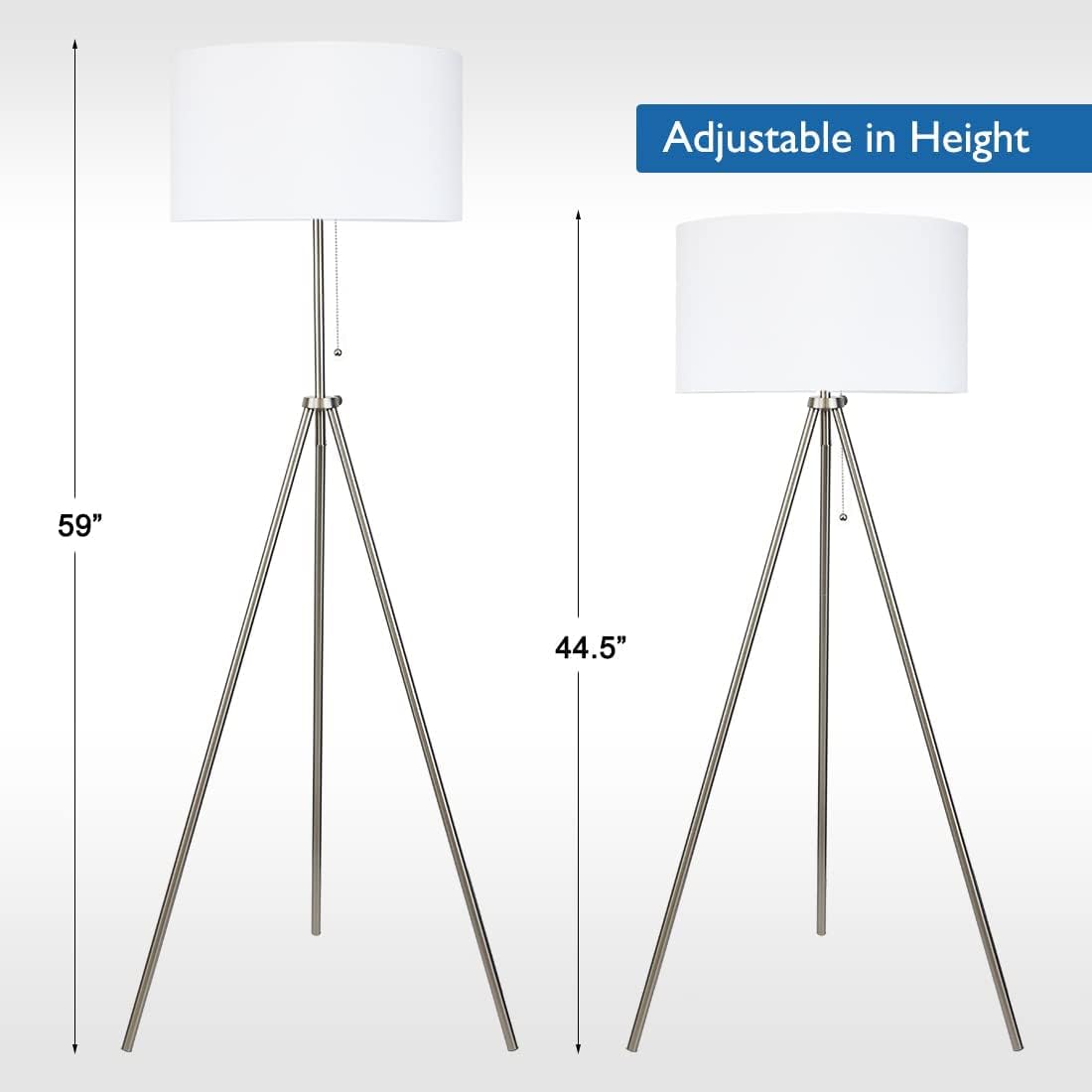 | Additional Features | 100% Metal Body, Adjustable in Height, Drum Linen Lampshade, ETL Listed, Pull Chain On-Off Switch |