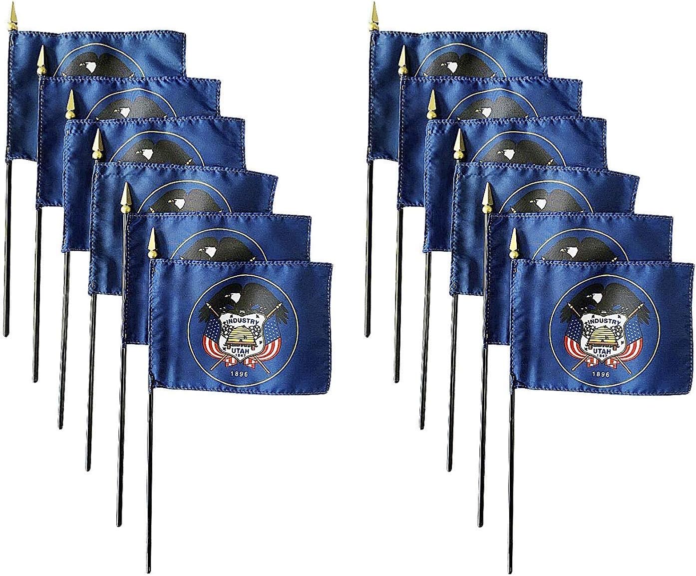 High quality 4x6" printed polyester flag mounted on a 10" black plastic staff with a table base to display upright. Perfect for tradeshows, conferences, and other events!